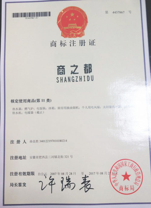 第11类“商之都 SHANGZHIDU”商标注册证
