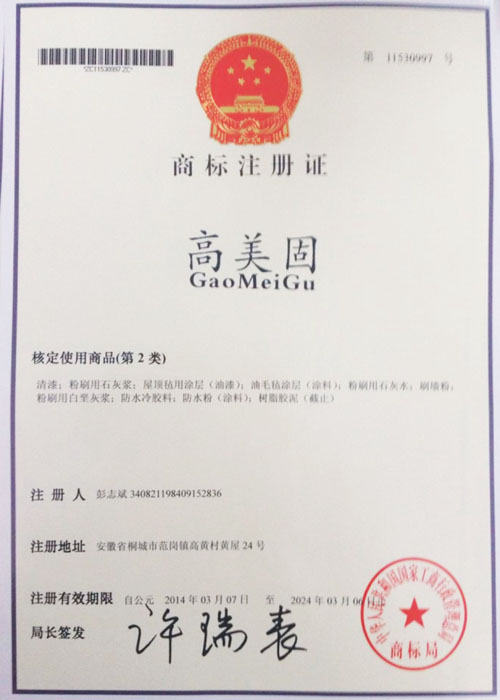 第02类“高美固 GAOMEIGU”商标注册证