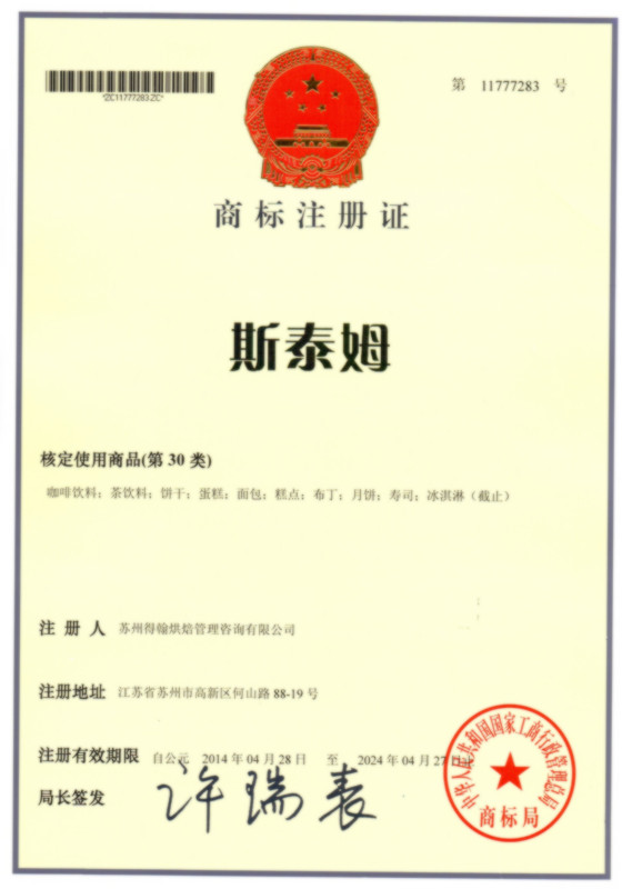 第30类“斯泰姆”商标注册证