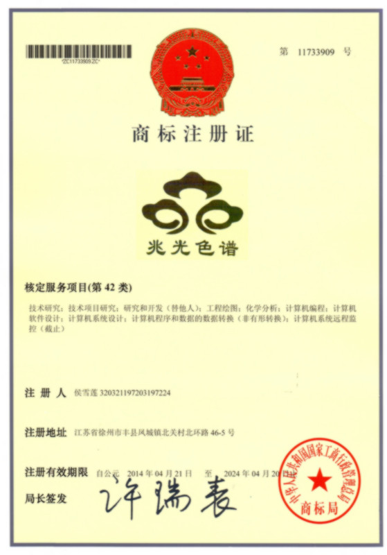 第42类“兆光色谱及图形”商标注册证