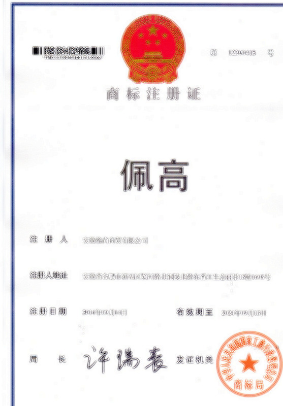 第24类“佩高”注册证