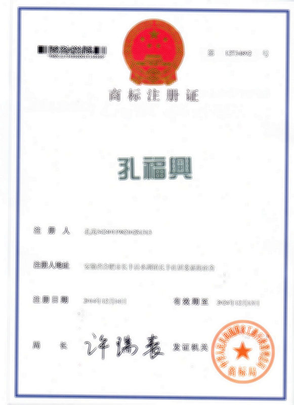 第30类“孔福兴”注册证