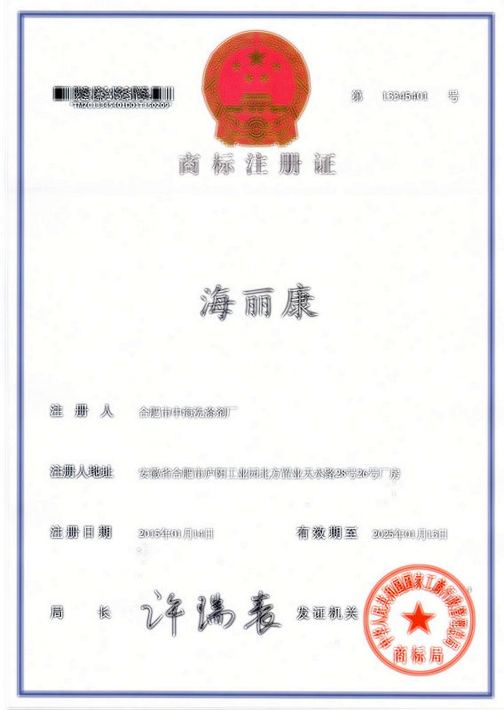 第3类“海丽康”注册证