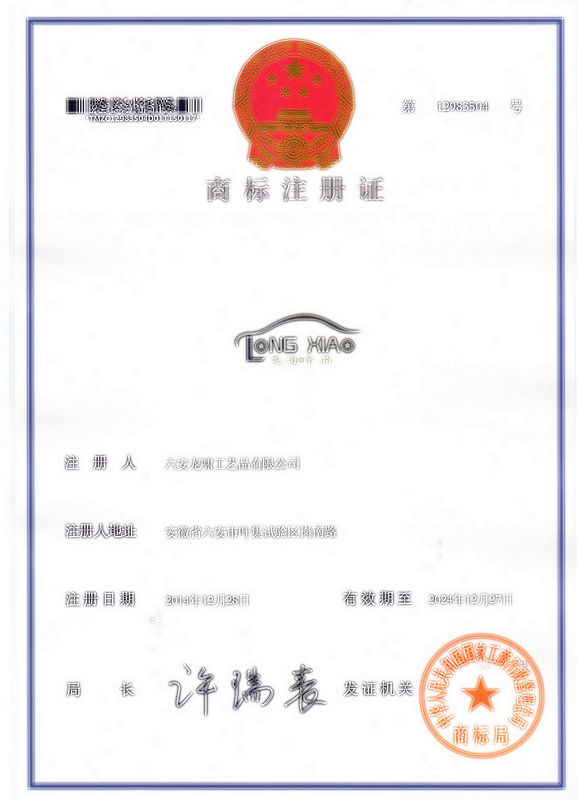 第20类“龙逍车品 LONGXIAO”注册证