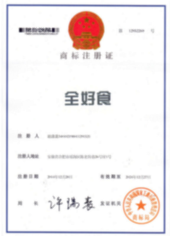第43类“全好食”注册证