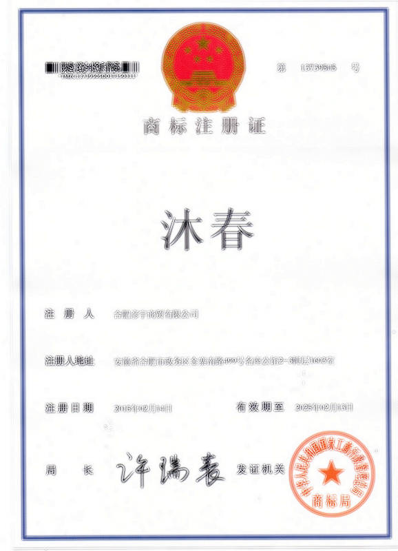 第18类“沐春”注册证