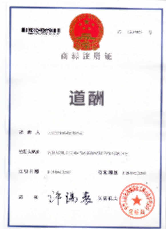 第1类“道酬”商标注册证