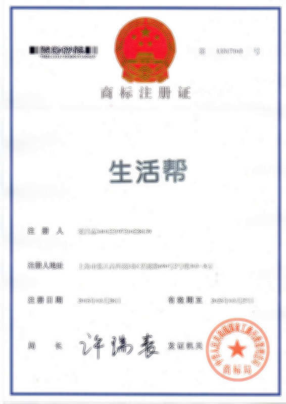 第9类“生活帮”商标注册证