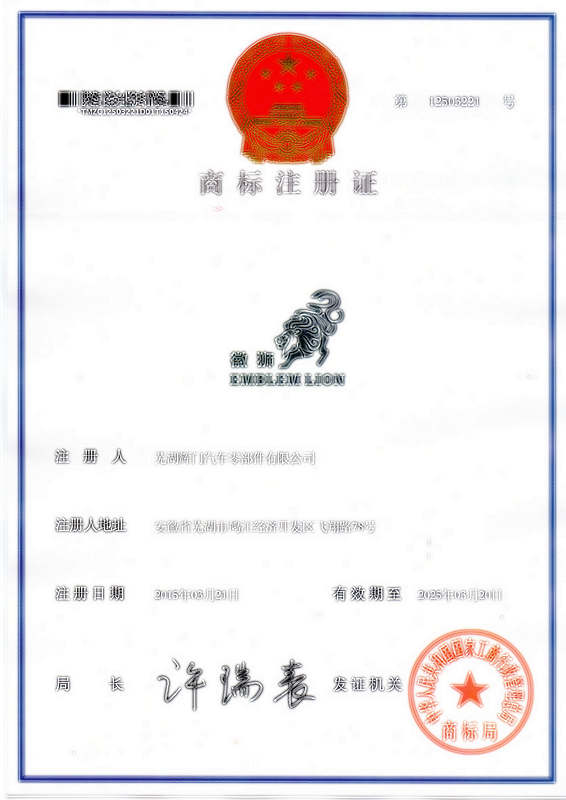 第35类“徽狮”商标注册证