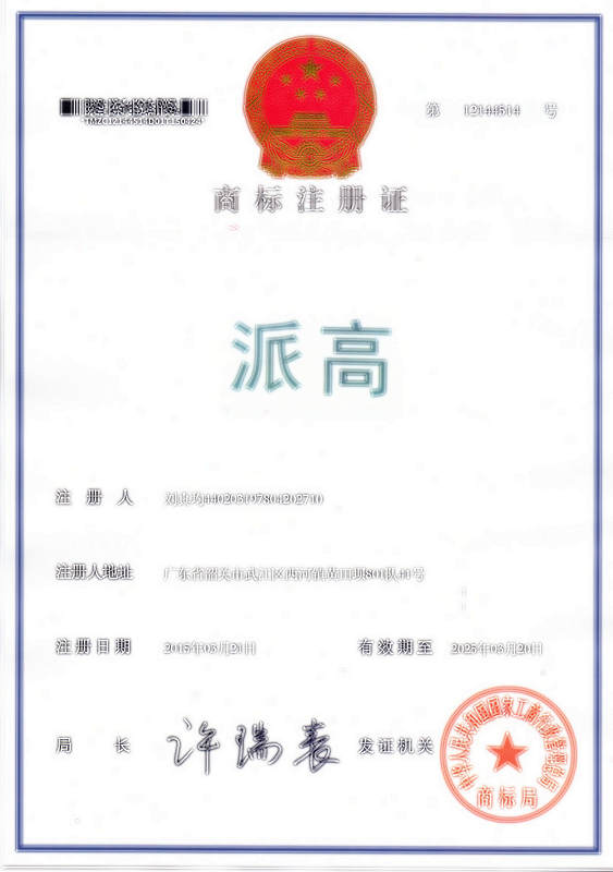 第6类“派高”商标注册证