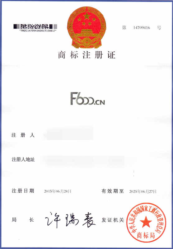 第35类“F600.CN”商标注册证
