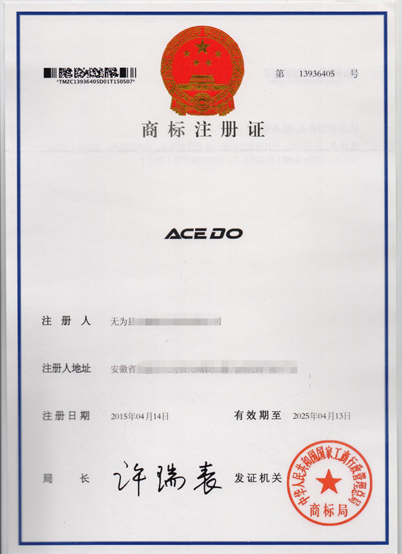 第28类“ACEDO”商标注册证