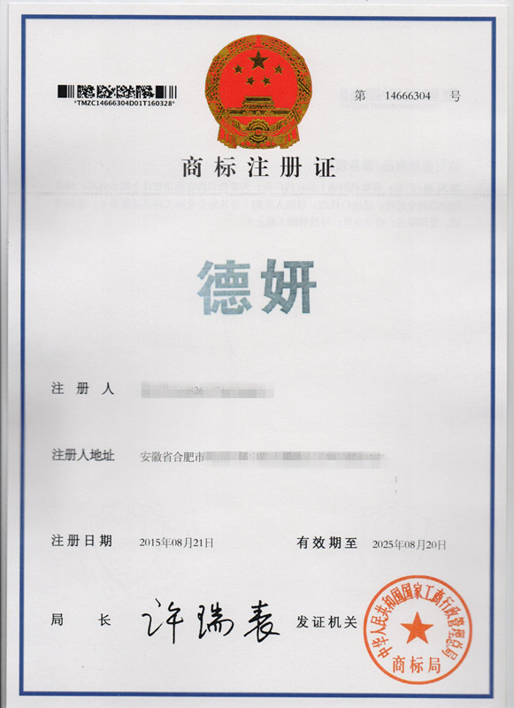 第35类“德妍”商标注册证