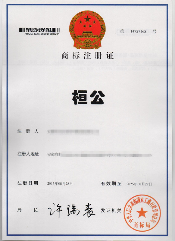 第30类“桓公”商标注册证