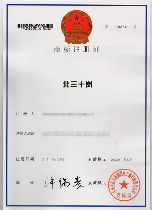 第31类“北三十岗”商标注册证