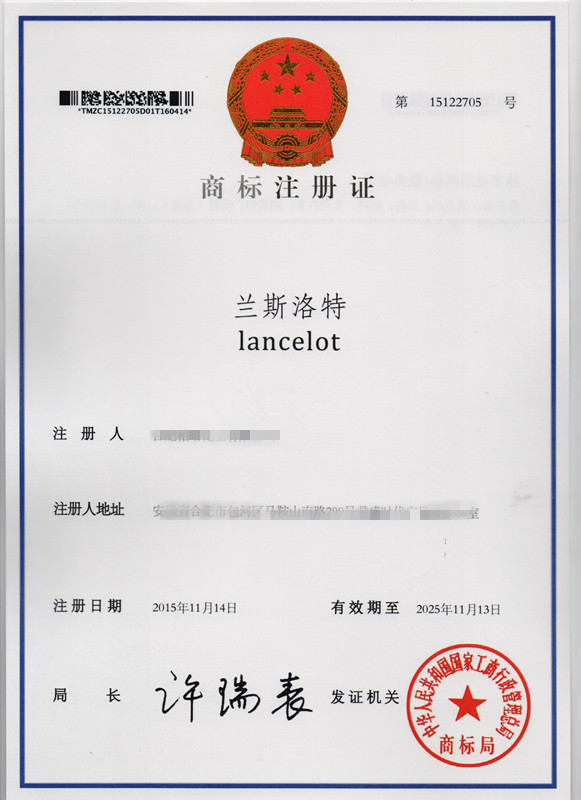 第2类“兰斯洛特 LANCELOT”商标注册证
