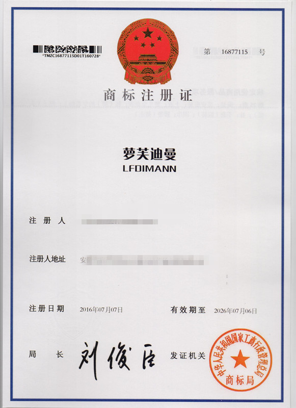 第25类“萝芙迪曼”商标注册证