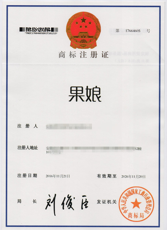 第31类“果娘”商标注册证
