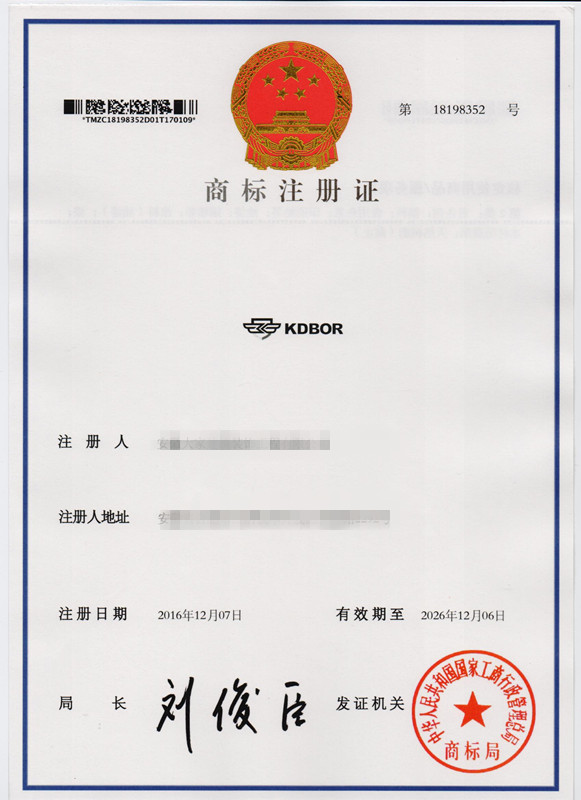 第2类“KDBOR”商标注册证
