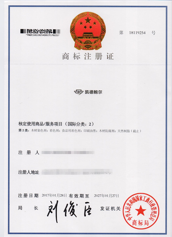 第2类“凯德鲍尔”商标注册证