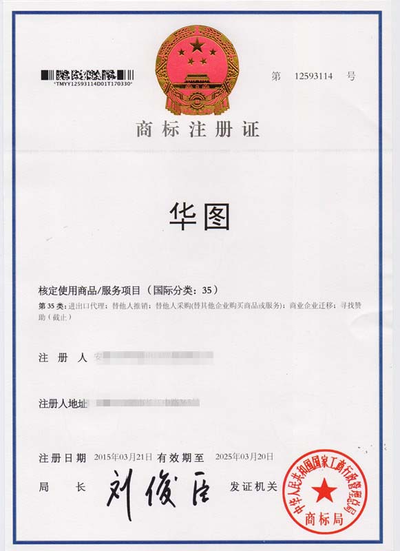 第35类“华图”商标注册证