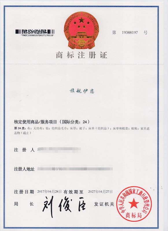第24类“旗舰伊恋”商标注册证