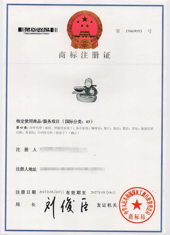 第43类图形商标注册证
