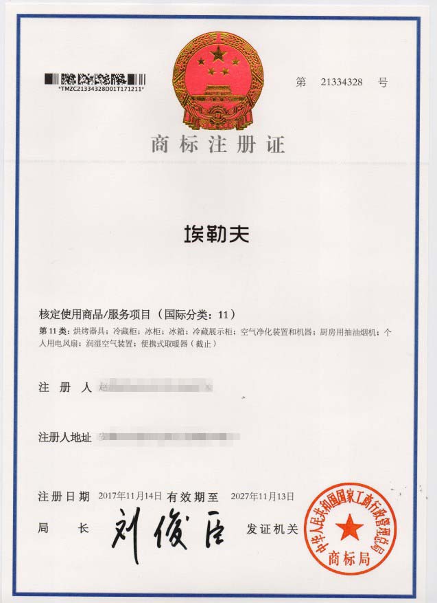 第11类“埃勒夫”商标注册证